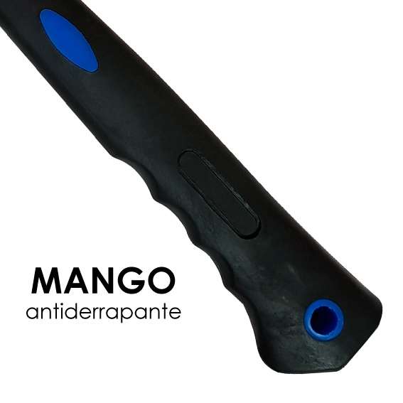 La cabeza está fabricada en acero de 16 oz, un mango a base de goma para evitar que se resbale y fibra de vidrio para reducir las vibraciones por impacto.